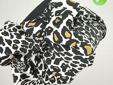 - Góra: bez rękawów, drapowana, wzór w panterę (biało-czarne plamy z karmelowymi akcentami), dekoracyjna kokarda/wiązanie przy dekolcie