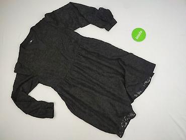 Sukienka damska, rozmiar M - Fason: kopertowy dół z rozkloszowaną spódnicą, długie rękawy - Kolorystyka: połączenie czerni z metaliczną, połyskującą tkaniną (efekt drobnych iskrzących punktów) - M...