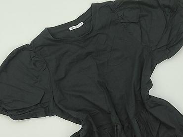 Sukienka damska ZARA BASIC - Fason: prosty T-shirt dress z krótkim rękawem - Długość: midi - Kolor: czarny z dekoracyjną wstawką/apaszką w pasie i na dole w wielobarwny wzór (zieleń, bordo, granat...