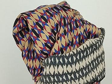 - Wzór: geometryczny, wielobarwny (beż, granat, czerń, czerwone akcenty); na dole kontrastowy pas w ciemniejszej tonacji