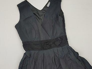 - Fason: rozkloszowany dół z zakładkami, odcięcie w talii z szerokim pasem i dekoracyjną kokardą.