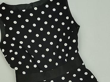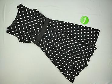 Sukienka damska w grochy - Fason: ołówkowy, bez rękawów - Wzór: duże białe grochy na czarnym tle - Dekolt: okrągły z drobnymi zakładkami z przodu - Talia: podkreślona kontrastowym, białym pasem - ...