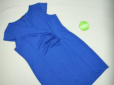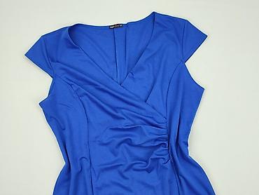 Sukienka damska, rozmiar 42, kolor kobaltowy. - Fason: prosta, lekko zwężana, długość za kolano. - Dekolt: okrągły. - Rękawy: krótkie z podwójną falbaną. - Materiał: 95% poliester, 5% elastan – el...