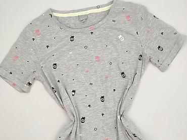Sukienka damska z krótkim rękawem, rozmiar L. - Kolor: jasnoszary - Wzór: botaniczny z gałązkami, kwiatami i drobnymi motylami/ptaszkami w pastelowych kolorach - Krój: prosta, lekko pudełkowa; okr...Stan: