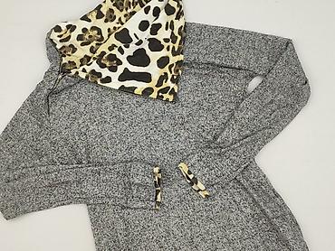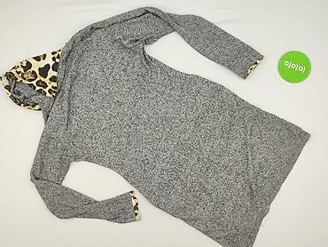 Sukienka damska z kapturem, dzianinowa, w odcieniach ciemnej szarości z intensywnym, artystycznym nadrukiem z przodu. - Fason: luźny, lekko rozkloszowany ku dołowi - Długość: midi (za kolano) - R...Stan: