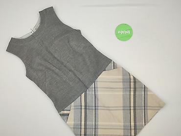 - Design: góra w jednolitym szarym kolorze, spódnica w beżowo‑szarą kratę; skośne cięcie łączące górę z dołem