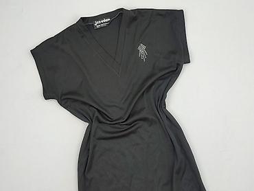 Czarna sukienka damska z dzianiny - Krój: lekko rozkloszowana, dopasowana u góry - Dekolt: w kształcie litery V - Rękaw: 3/4 - Rozmiar z metki: 36/38 (S) - Materiał: 65% wiskoza, 31% poliester, 4%...
