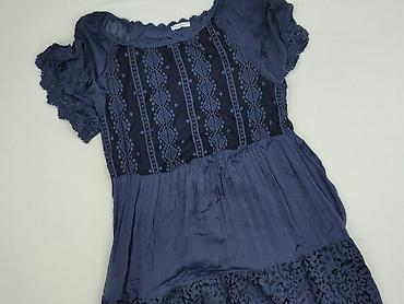 Sukienka damska w paski – 100% wiskoza, Made in Italy - Krój: zwiewna, odcinana w talii z delikatnie marszczonym dołem - Wzór: drobne poziome/ukośne paski w odcieniach granatu i bieli - Rękawy: kr...