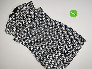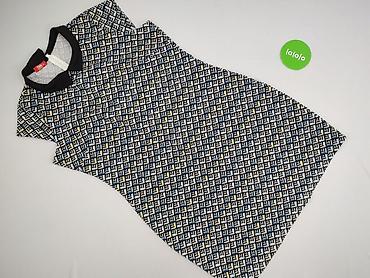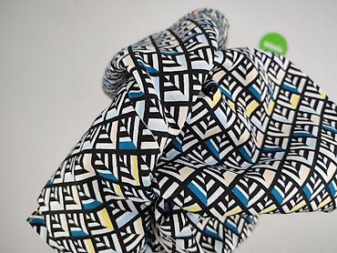- Wzór: geometryczny, gęsty print w czerni z akcentami bieli, żółci i niebieskiego