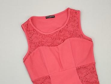Sukienka damska UK2LA, rozmiar M/M - Fason: dopasowana, bez rękawów, długość przed kolano - Kolor: intensywny neonowy róż - Detale: czarne, półprzezroczyste wstawki z siateczki w talii (ukośny pan...