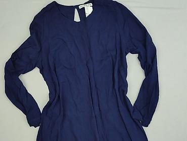 Sukienka damska z długim rękawem, granatowa - Fason: luźny, oversize z lekko zwężanym dołem - Długość: za kolano (midi) - Dekolt: okrągły - Rękaw: długi - Detale: kontrastowe, wszywane panele mate...