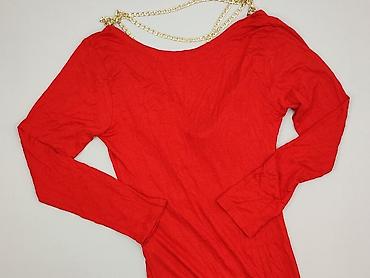 Czerwona prążkowana sukienka swetrowa Mystify - Marka: Mystify - Rozmiar z metki: L - Materiał: 100% akryl (miękki, elastyczny dzianinowy splot) - Krój: dopasowany, prążkowany - Dekolt: w kształci...
