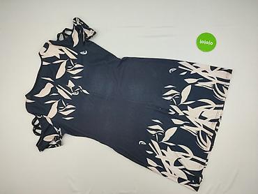 Sukienka damska z długim rękawem, wzór w duże kwiaty na granatowym tle. - Krój: lekko rozkloszowana, długość do kolan (tunika/sukienka). - Dekolt: okrągły. - Rękawy: długie, z troczkami do zawią...