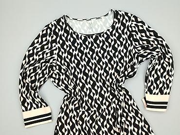 Sukienka damska, rozmiar M - Krój: kopertowy z dekoltem w serek, długa rękaw 3/4–pełny (na zdjęciach widać różne ułożenie rękawa) - Długość: midi do kolan/za kolano - Wzór: geometryczny, czarno‑bi...