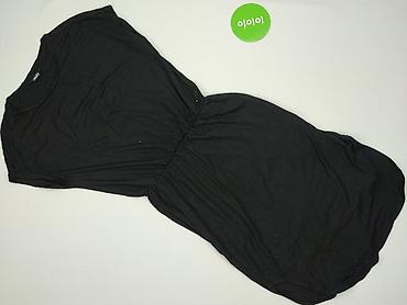 Czarna, dopasowana sukienka t-shirtowa z krótkim rękawem. - Krój: prosta, przylegająca do sylwetki, długość za kolano (midi). Delikatne marszczenie w pasie po obu stronach podkreślające talię. - D...