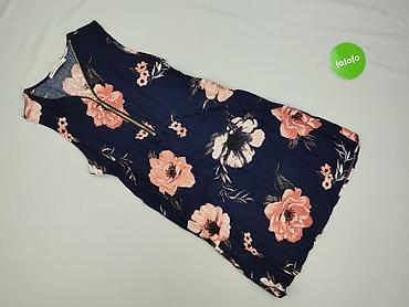 Sukienka damska bez rękawów - Krój: prosta, lekko luźna, na ramiączkach - Długość: midi (miarka na zdjęciach – ok. 95–100 cm) - Kolor: granatowy - Wzór: zielone kwiaty i roślinne motywy na całej p...