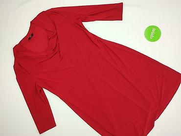 Sukienka damska, czerwona, rozmiar 42. - Krój: prosta, lekko zwężana, długość za kolano (tuba). - Rękawy: 3/4. - Dekolt: okrągły. - Materiał: 100% poliester – lekko elastyczny, o drobnej fak...