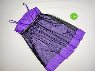 - Dół: warstwowa, lekko marszczona spódnica z tiulową nakładką; fioletowa listwa wykończeniowa u dołu.