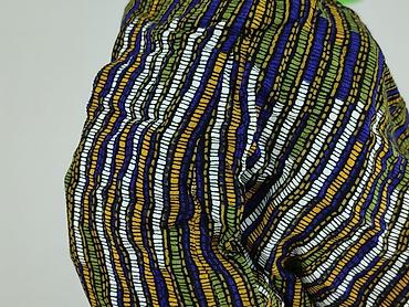 - Wzór: wielokolorowe, pionowe pasy/segmenty w odcieniach oliwkowej zieleni, musztardowego, granatu i bieli