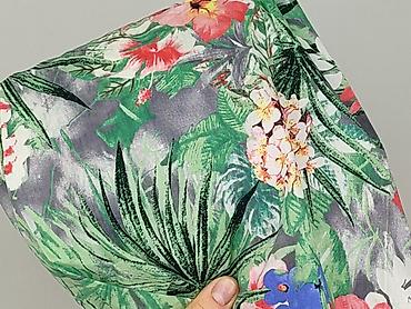 - Wzór: tropikalny – gęste zielone liście, kwiaty w odcieniach czerwieni, różu, bieli i niebieskiego na szaro‑zielonym tle