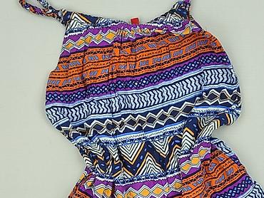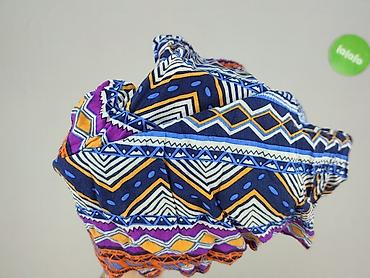 - Wzór: intensywny etniczny/geometryczny print w pasy; kolory: granat, pomarańcz, fiolet, biel, żółty.