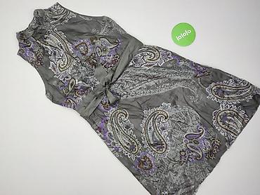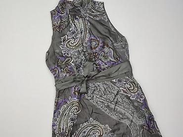 - Fason: bez rękawów, z wysoką stójką i wiązaniem w talii (pasek z tego samego materiału), długość przed kolano