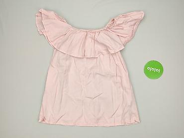 Bluzka damska Juna, rozmiar 38. - Krój: hiszpanka z elastyczną gumką przy dekolcie i na dole, wiązanie z przodu - Rękawy: krótkie, bufiaste - Wzór: drobne białe i czerwone paseczki - Kolor: pudrow...