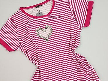 - Fason: luźny, prosty krój z krótkim rękawem; wydłużony tył (asymetryczny dół).