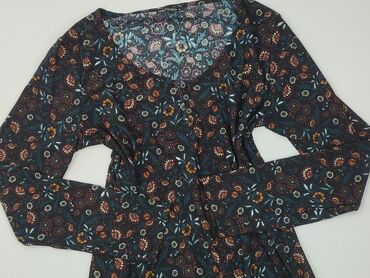 Sukienka damska Inextenso, rozmiar M - Fason: prosta, lekko dopasowana, długość do kolan - Rękaw: 3/4 - Dekolt: okrągły - Wzór: drobny, gęsty motyw kwiatowo-geometryczny na granatowym tle; kontras...