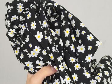- Wzór: czarne tło w białe stokrotki z żółtym środkiem (kwiatowy print na całej powierzchni)