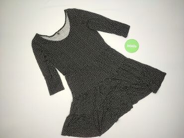 Sukienka damska, rozmiar L. - Krój: jednoczęściowa, góra dopasowana, dół rozkloszowany do kolan. - Góra: gładka, czarna, z krótkim rękawem i okrągłym dekoltem. - Dół: granatowa spódnica w białe, d...