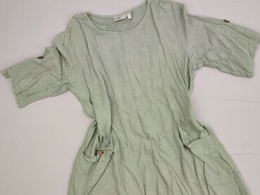 Sukienka damska Isolde, rozmiar L - Fason: luźny, komfortowy, z marszczeniami po bokach, które ładnie podkreślają talię - Długość: za kolano/midi (w zależności od wzrostu) - Rękaw: krótki - Dekolt...