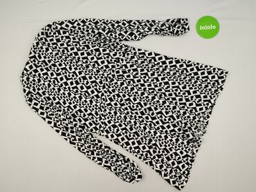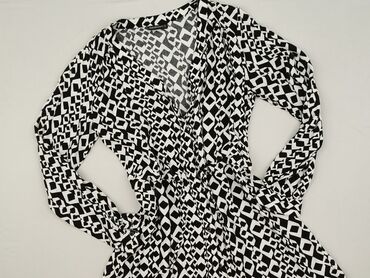Sukienka JANINA, rozmiar EU 38 (metka na zdjęciu). - Fason: kopertowy, wiązany w talii, z dekoltem V i długimi rękawami - Długość: do kolan/za kolano (w zależności od wzrostu) - Wzór: czarno‑beżo...