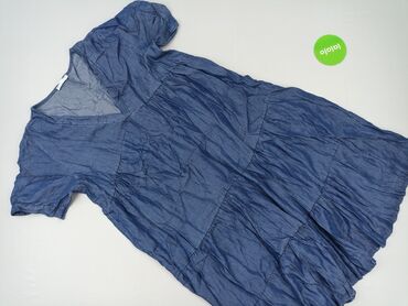 Sukienka jeansowa damska, rozmiar S - Krój: prosta, długość midi za kolano, zaokrąglone wykończenie dołu - Dekolt: okrągły z krótką listwą guzikową (3 metalowe napy) i delikatnym V - Rękawy: krótk...