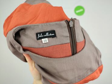 Sukienka damska JOLMAR, rozmiar 34. - Fason: dopasowana w talii dzięki wszytej gumce/ściągaczowi, rozszerzający się dół do kolan. - Dekolt: okrągły z asymetrycznym wycięciem na ramię i ozdobnym pa...