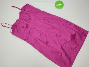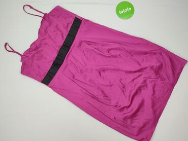 Sukienka damska w kolorze intensywnego różu (fuksja), rozmiar XL. - Krój: rozkloszowany, długość mini. - Dekolt: kwadratowy, szerokie ramiączka z ozdobnymi falbanami. - Talia: podkreślona paskiem/...