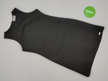 Czarna, dopasowana sukienka koktajlowa bez rękawów. - Fason: ołówkowy, długość do kolan. - Dekolt i ramiona z półprzezroczystej siateczki. - Materiał w drobny, fakturowany splot z delikatnym, sr...Stan: