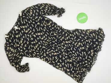 Sukienka damska Next Look - Kolorystyka: biało‑czarna - Wzór: grafika z sylwetkami ptaków na całej powierzchni - Fason: lekko taliowana, długość przed kolano, krótkie rękawy - Dekolt: półokrągły z...