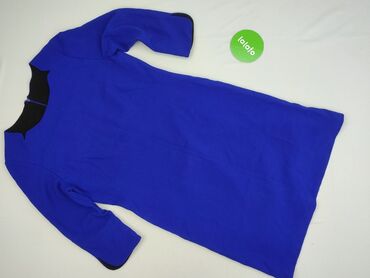 Sukienka damska w kolorze kobaltowym - Krój prosty, lekko w literę T, długość przed kolano. - Rękawy 3/4. - Okrągły dekolt. - Zapięcie z tyłu na zamek. - Materiał o delikatnie zamszowej/meszkowej ...