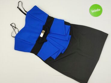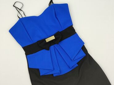 Sukienka damska koktajlowa w kolorze kobaltowym - Krój: dopasowany, długość midi, bez rękawów - Dekolt: okrągły z małym wycięciem z przodu - Pasek: wszyty, z ozdobną, lśniącą złotą klamrą-panelą z...