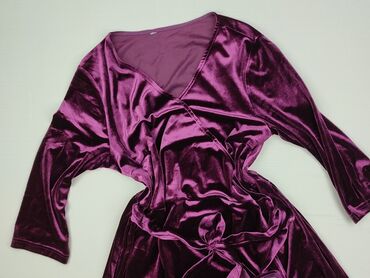 Na co dzieńSukienka damska kopertowa z aksamitu – fuksja/ciemny fiolet