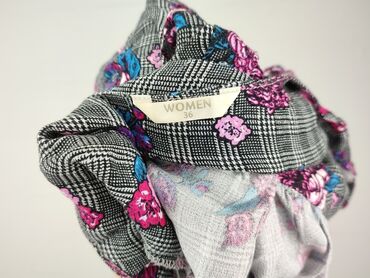 - Wzór: połączenie drobnej kraty (pepita) z nadrukiem kwiatowym – róże i kwiaty w odcieniach fuksji, różu i niebieskiego na szaro‑czarnym tle.