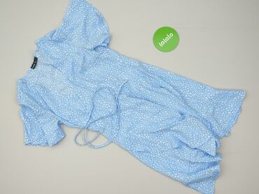 Sukienka damska SHEIN - Rozmiar: M (EU 38 / US 6) - Kolor: niebieski z białym, drobnym, kwiatowym nadrukiem - Fason: kopertowy dekolt V, krótki rękaw, odcięcie w talii z lekkim marszczeniem, dół z...