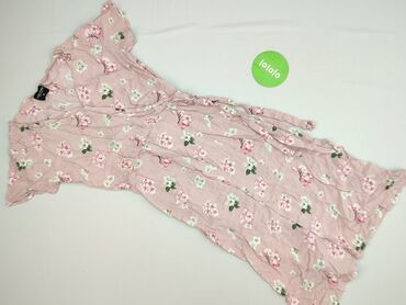 Sukienka damska TOM&ROSE, rozmiar M - Kolor: granatowy w kwiatowy wzór (róże w odcieniach różu i lila, zielone liście) - Fason: midi do kolan, lekko rozkloszowany dół - Rękaw: krótki, kimonowy/cap...