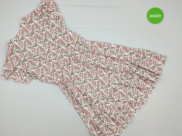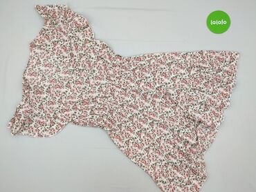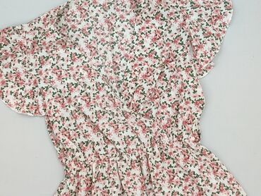 Sukienka damska w kwiaty - Fason: kopertowy/wiiązany z boku, z lekko rozkloszowanym dołem i nieregularnym, asymetrycznym brzegiem - Rękawy: krótkie, bufiaste, z delikatną gumką przy ramionach - De...