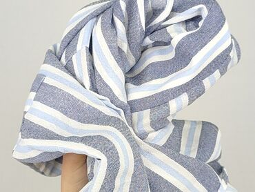 - Wzór: pasy w odcieniach bieli, błękitu i szarości, układ pionowo-poziomy dla wysmuklenia sylwetki