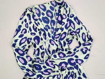 Sukienka damska w zwierzęcy print - Krój: mini, lekko rozkloszowany dół - Dekolt: kopertowy w kształcie litery V, z delikatnym marszczeniem i małym guziczkiem przy biuście - Talia: elastyczna gumk...
