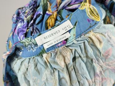 Sukienka damska RESERVED – rozmiar EU 42 (UK 14), Made in Poland. - Krój: luźna, rozkloszowana, z falbaną na dole; talia delikatnie marszczona, podkreślająca sylwetkę. - Dekolt: hiszpański/opadają...