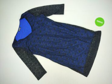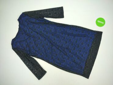 Sukienka damska z połyskiem, dzianina lurex - Fason: dopasowany, mini/midi (wydłużony dół z marszczeniem po bokach) - Rękaw: długi - Dekolt: zabudowany (okrągły) - Kolor: ciemny granat z drobnym, ...Stan:
