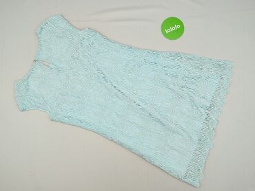 Sukienka damska bez rękawów, pastelowy błękit. - Rozmiar: 44 (metryczka widoczna na zdjęciu). - Krój: dopasowana góra z zaszewkami, rozszerzany dół z kontrafałdami – lekko trapezowa linia, długość ...